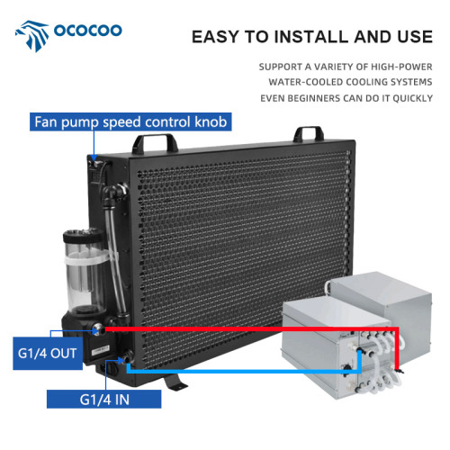 定制高密度鳍片水冷板,36道散热水道,外置220V电源,方便开关使用。