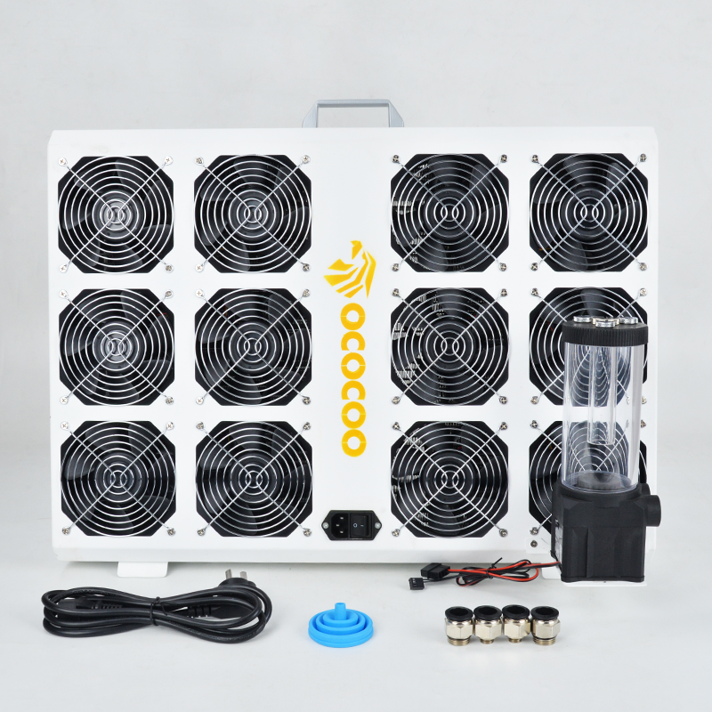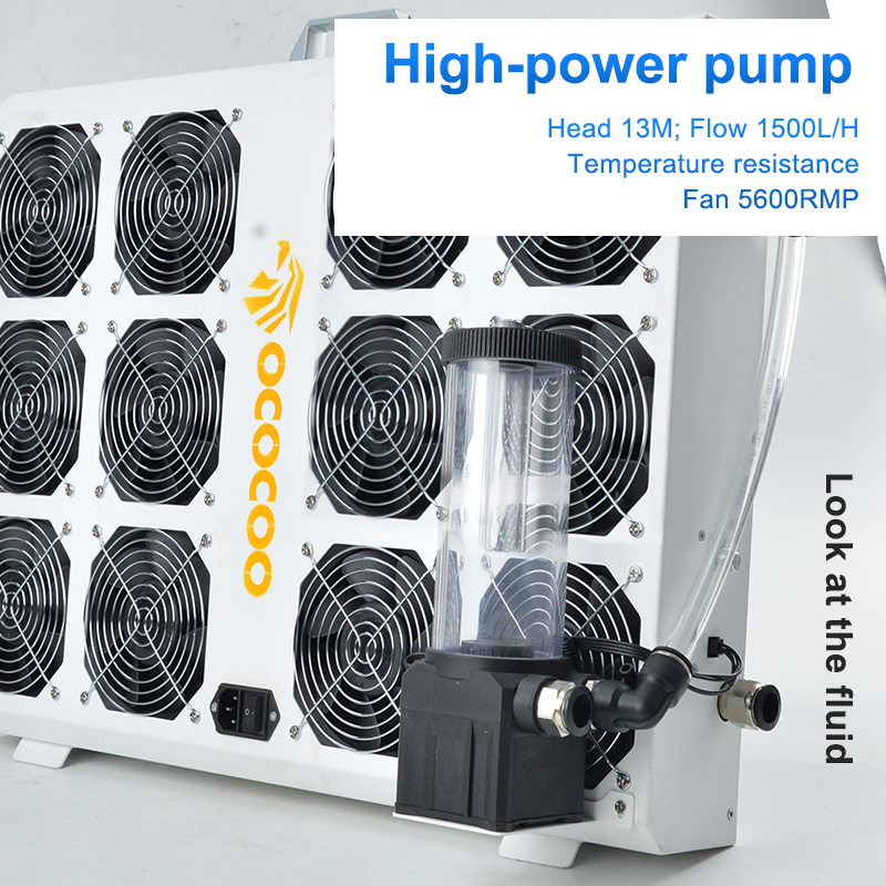 定制高密度鳍片水冷板,36道散热水道,外置220V电源,方便开关使用。