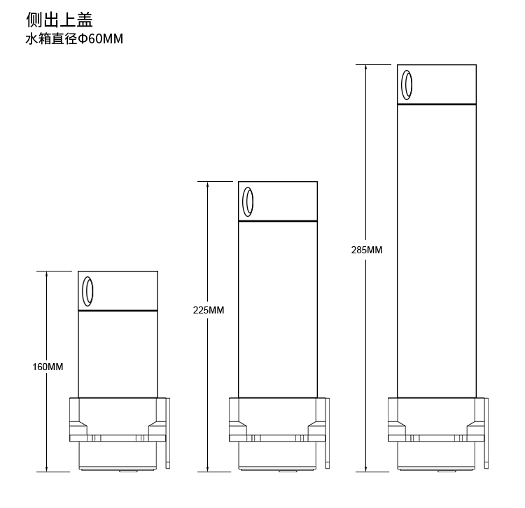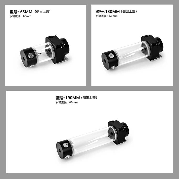 水箱尺寸:直径60mm,长度65mm/130mm/190mm(水箱透明亚克力部分长度)